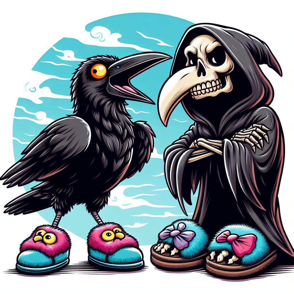 Alle cinque del mattino una cornacchia – cra cra! – chiamava a gran voce, dove siete amici miei? Non fa in tempo a dare seguito a questi pensieri che la morte la ghermisce, nella forma di una ciabatta scagliata con perizia letale.